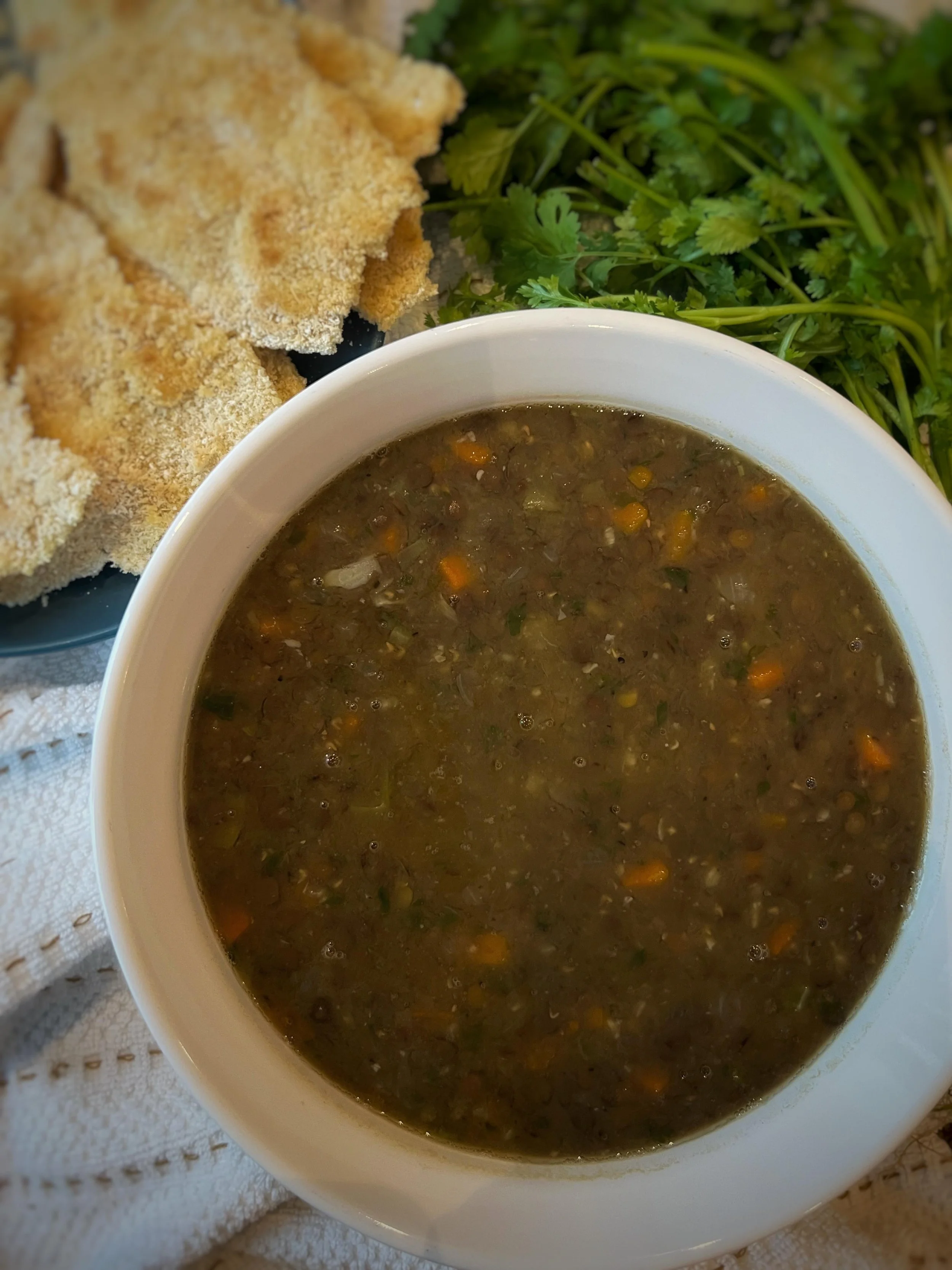 Para esta receta vas a necesitar: Lentejas sin cocer, ajo, cilantro, zanahoria, apio, auyama (opcional), cebolla blanca, aceite de oliva, sal, pimienta y pimienta de cayena.